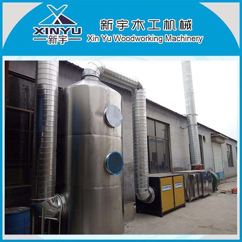 工作原理:帶有粉塵,有害廢氣、煙霧的氣體從吸塵吸氣管道進(jìn)入旋風(fēng)填料噴啉塔,經(jīng)過(guò)不銹鋼旋風(fēng)板兩次改變風(fēng)向使氣體在塔內(nèi)來(lái)回旋轉(zhuǎn),通過(guò)兩種不同的填料層,再經(jīng)過(guò)兩次的噴淋,使粉塵和有害氣體,及煙霧的有效的分解稀釋,再通過(guò)除霧層除去噴淋所帶來(lái)的水霧,利用風(fēng)機(jī)從排風(fēng)管道排除,根據(jù)有害氣體和煙霧的濃度:加上等離子光氧等電子設(shè)備配套使用,這樣處理效果會(huì)更佳。